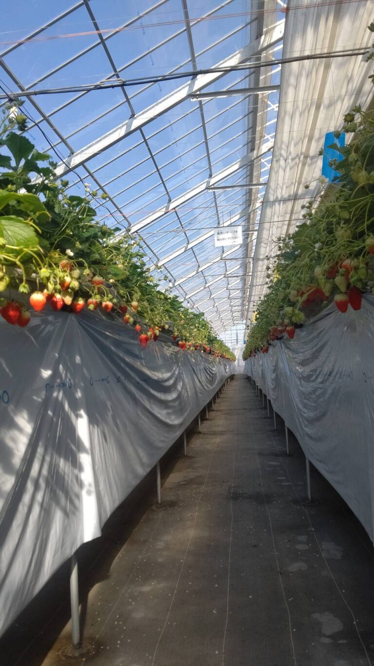 私はいちごが取られていない時間帯を狙って朝一10時からをチョイスしたところ、広いいちごハウスに他3組がいた位なので全く混雑はしてませんでした。前日でも予約が普通にできるからそれほど混雑はしない?(ちなみに、その日一番いちごの出来が良いハウスに案内してくれてるそうです)